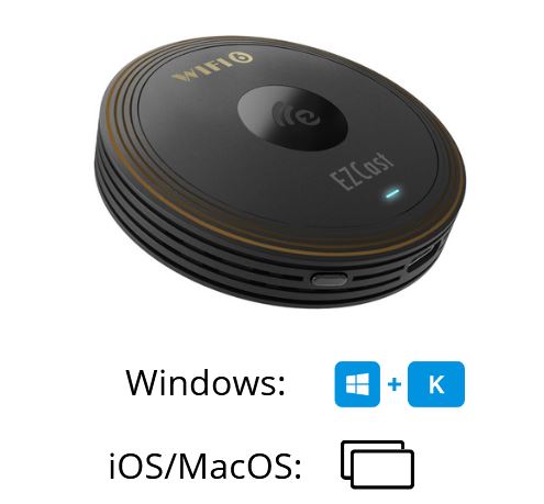Ingen installation eller programvara krävs – anslut och börja presentera direkt. Använd Miracast eller Airplay för att dela. Punkt-till-punkt anslutning så behöver inte anslutas till ert nätverk.